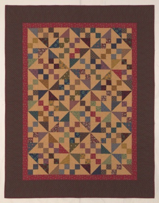 This quilt is an example of what I call related fabrics (civil war) paired with a common background (beige print). When choosing the fabrics be sure you have contrast between the background and the prints.