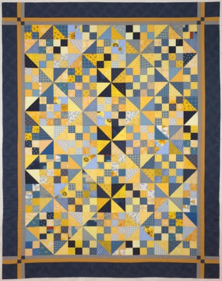 When I made a quilt using blues and yellows, all of the blues were darker than the yellows. Some of Joyce’s “blues” are really white with very small blue flowers. A few of the “yellows” could also be considered white. There is one large floral print with blue and yellow. The unexpected (to me at least) result is incredible. It glows!! This quilt shows that you can make a wonderful quilt without listening to me.